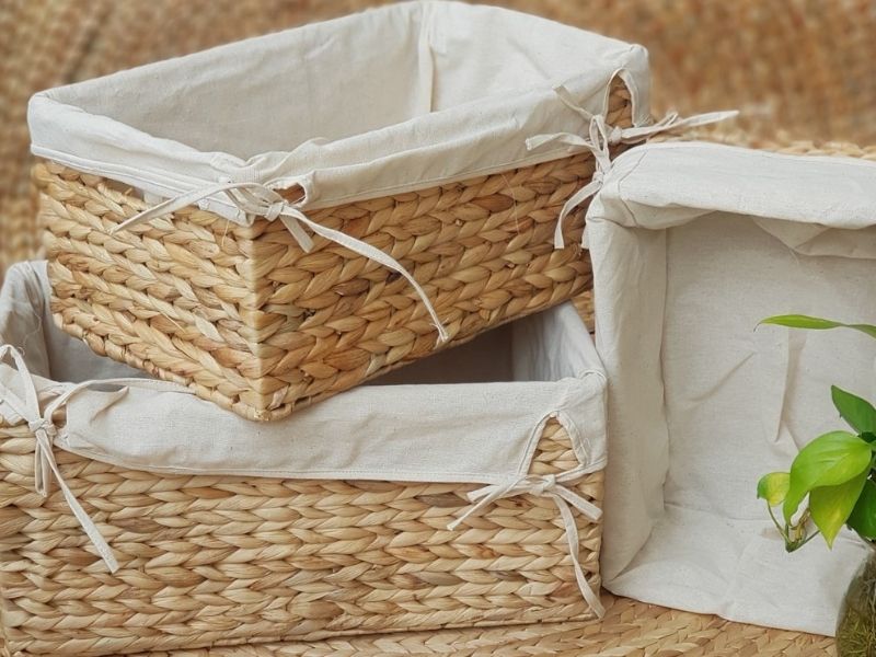 Không chỉ vậy, sản phẩm gồm 2 loại là lót vải và không lót vải. Bộ ba số giỏ lục bình đựng đồ chữ nhật có lót vải còn có thêm phần nắp đậy phù hợp. Bộ ba số giỏ lục bình đựng đồ chữ nhật không lót vải lại có phần tay cầm liền hai bên giúp người dùng dễ cầm nắm khi vận chuyển, sử dụng