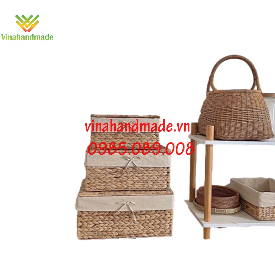 Vinahandmade - nơi cung ứng Bộ ba số giỏ lục bình đựng đồ chữ nhật được nhiều khách hàng lựa chọn