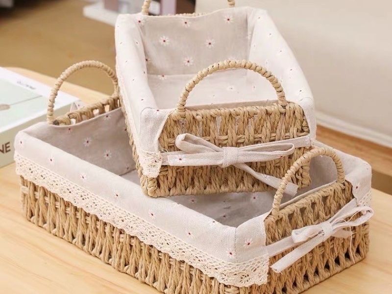 Với những gia đình nuôi các con vật cưng như chó, mèo,... thì nên sắm những chiếc thảm bằng cói, lục bình hay bẹ ngô để chúng có thể nghỉ ngơi bất cứ lúc nào. Những bạn có ít không gian đựng đồ, muốn sắp xếp tủ quần áo của mình trở nên gọn gàng, ngăn nắp thì có thể tham khảo ngay các mẫu giỏ cói với nhiều size lớn nhỏ khác nhau.
