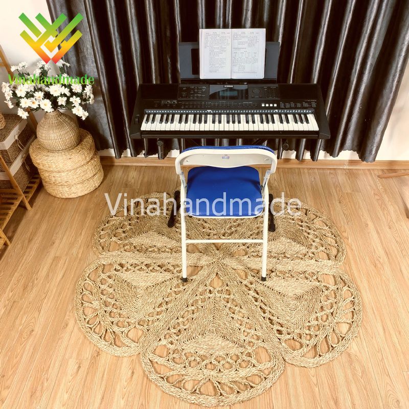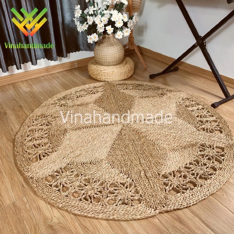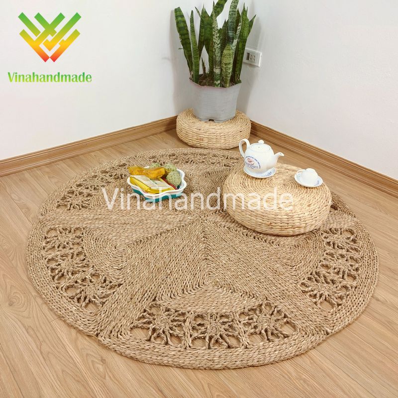 Vinahandmade - Địa chỉ cung cấp thảm cói tròn họa tiết hoa cúc chất lượng uy tín của Việt Nam