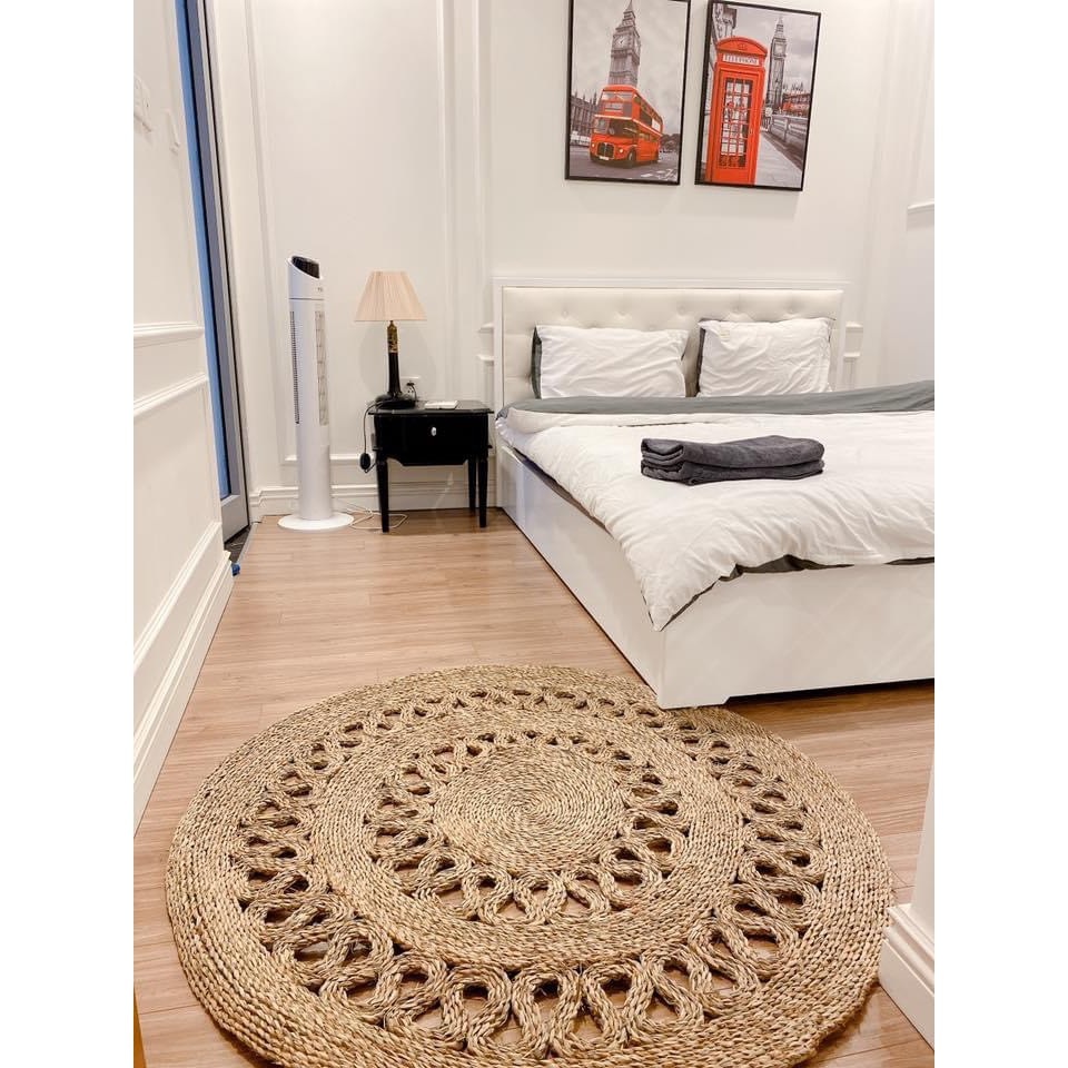 Thảm cói tròn lượn sóng của Vinahandmade bởi được chính tay nghệ nhân lành nghề lựa chọn nguyên liệu nên khi sử dụng còn vương hương thơm nồng nàn của tự nhiên và nắng trời, đem lại phong cách vintage dành cho khung cảnh căn phòng, khách sạn, homestay hay hình ảnh sản phẩm.